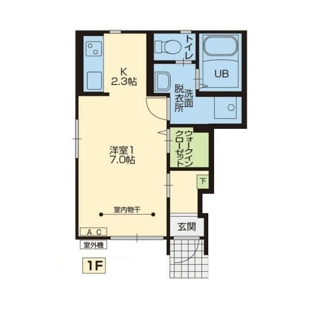 | 間取り | 1K(K2.3 洋7) | 主要採光面 | - |